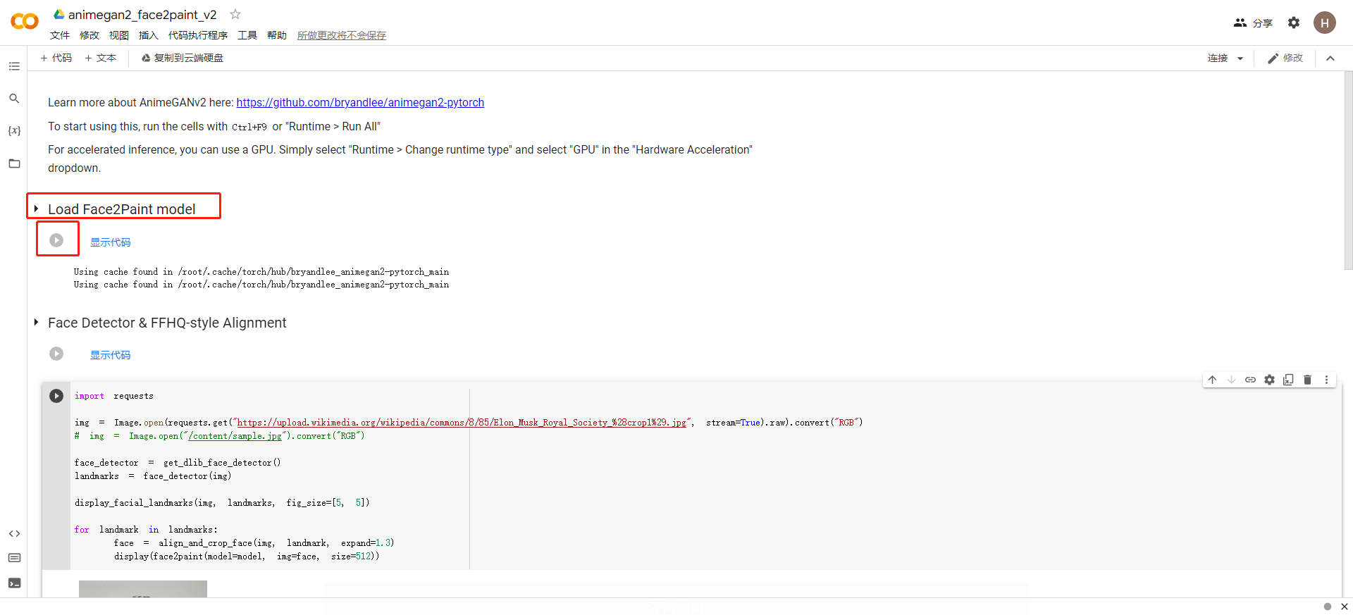 进入AnimeGANv2在线代码网站