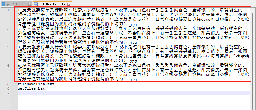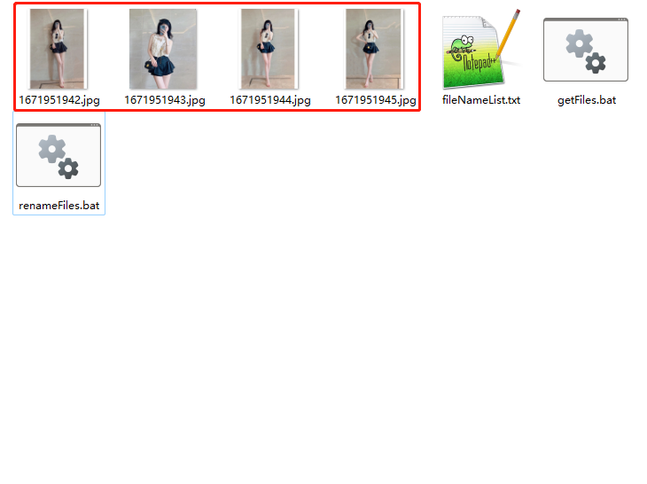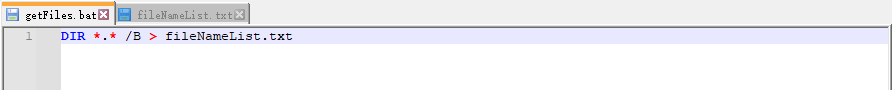 新建一个getFiles.bat的文件,然后打开这个新建的批处理文件,将以下代码复制到里面,保存后双击这个批处理文件,最后获取的文件的名称会存放在这个文件里fileNameList.txt